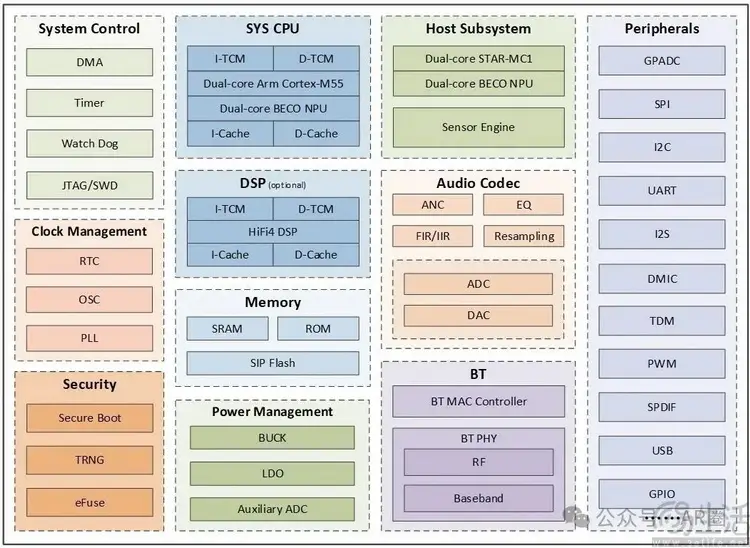 - Bestechnic: BES2800 uses Arm China’s STAR-MC1 embedded processors (Armv8-M architecture) designed for IoT/low-power devices